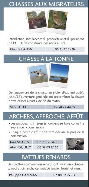 CONTACT:Président de l'ACCA Fréréric MORA Tel: 06.81.09.70.03